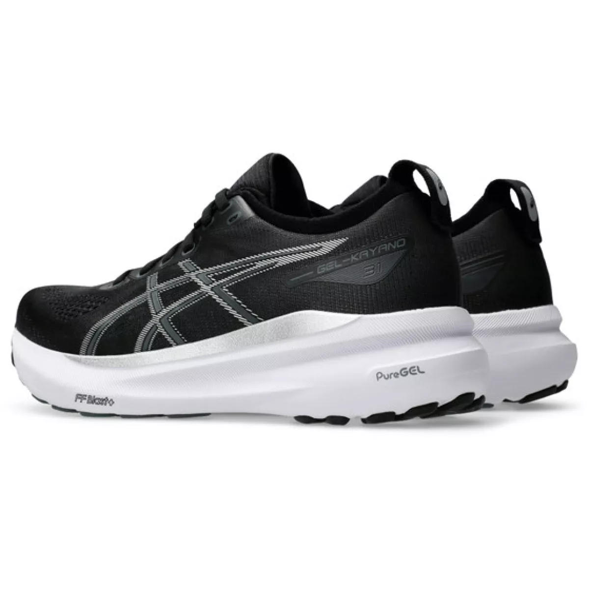 ASICS GEL-KAYANO™ 31 Black/White dames, de meest comfortabele geavanceerde stabiliteitsschoen voor overpronerende lopers. Het 4D GUIDANCE systeem past de stabiliteit aan bij elke stap, oftewel on-demand stability. Vernieuwde buitenzool met HYBRID ASICSGRIP zorgt voor grip en zachtheid.