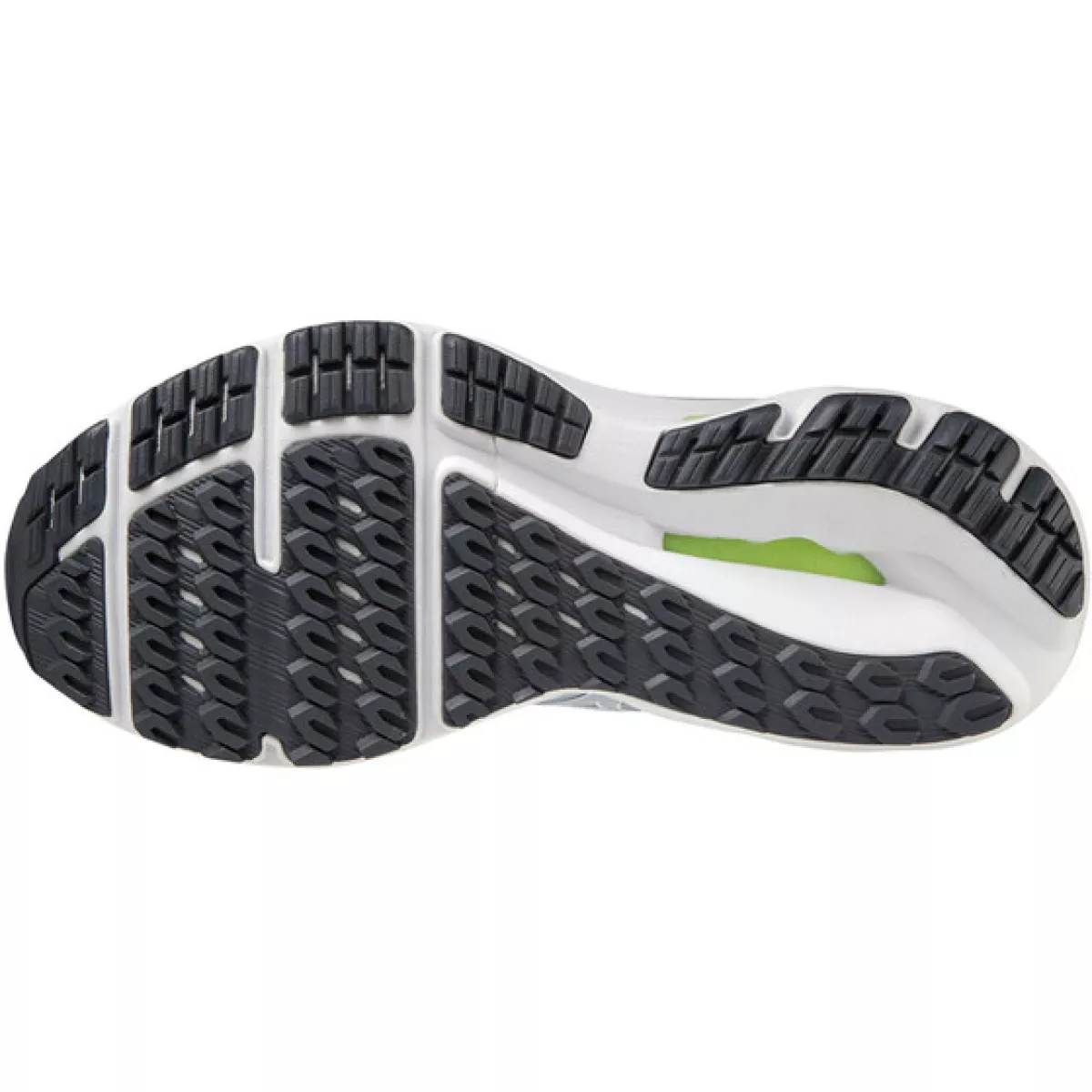 De Wave plaat is een kunststof plaat, die in de schoen is verwerkt en zorgt voor stabiliteit tijdens het landen en geeft je extra veerkracht tijdens de afzet. De geweldige demping en energieteruggave is te danken aan het Mizuno Enerzy Foam op de hielwig.