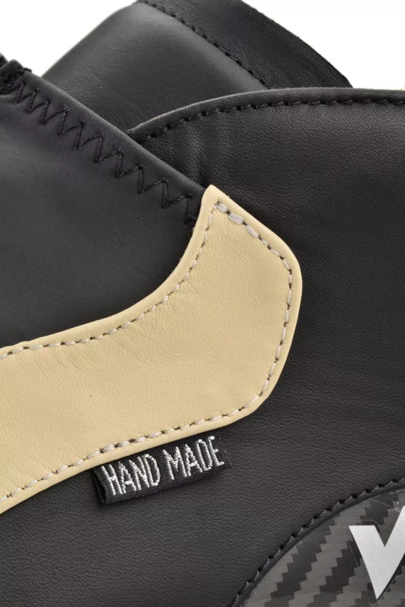 Deze op een S/M leest gemaakte schaatsschoenen worden volledig met de hand gemaakt, zijn voorzien van een natuurlederen opbouw en lichte carbon kuip.